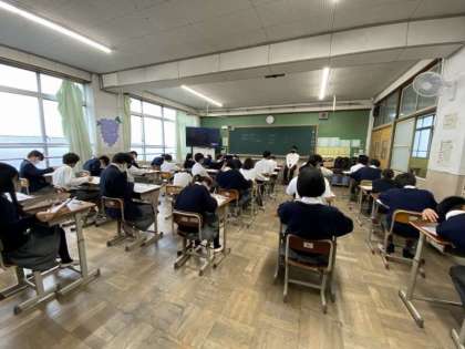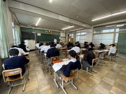 10月7日(金)〜11日(火)は、学習確認プログラムの実施日です。今日、3教科のテストがありました。肌寒い教室が、テスト開始と同時に、雨音だけ聞こえる静けさに包まれます。習ったことを思い出しながら、みんな一生懸命取り組んでいました。写真は1年生の様子です。