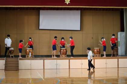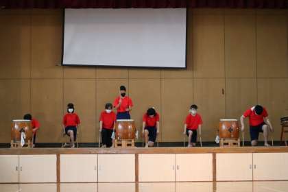 いよいよ明日は文化発表会です。4時間目、10組は前日リハーサルを行いました。衣装をそろえ、本番さながらの緊張感で太鼓をたたきます。