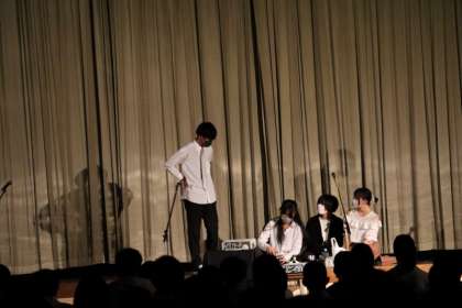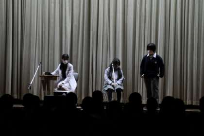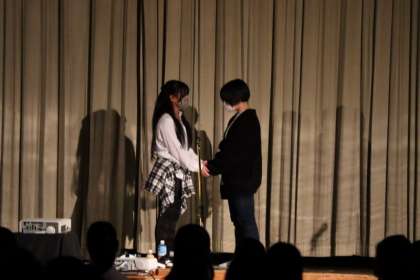 2年生の部では、演劇部の発表がありました。「星の子症候群」という病に苦しむ女の子が、仲間の優しさと支えで感情を取り戻していくお話です。音響や照明、キャストの迫真の演技などが相まって、いっとき別世界に引き込まれてしまう舞台でした。