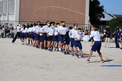 最後の種目は「大縄跳び」です。体育の授業や昼休みを使って、練習を重ねてきました。その成果を発揮し、一回でも多く跳ぼうと気持ちを合わせました。