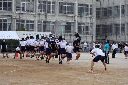 ラストの競技は「大縄跳び」です。大きくたっぷり縄を回し、タイミングをあわせて跳び続けます。どのクラスも、練習してきたことを思い出しながら跳びました。