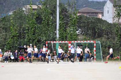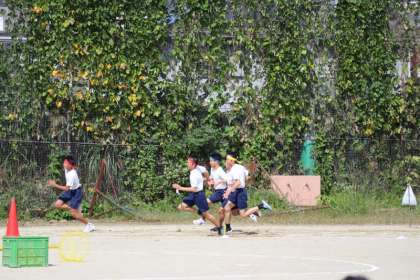 開会式の後、競技がスタートしました。最初は短距離走です。男子も女子も、たくましく力強い走りでした。