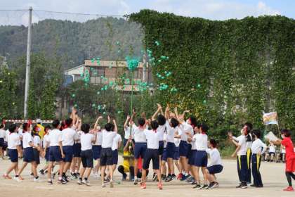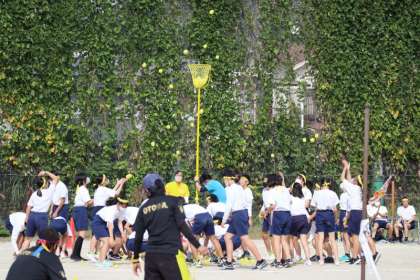 色別選択種目の「玉入れ」です。身体能力だけでなく、それぞれ作戦があるようでした。かごの中に、100個以上の玉が入ったチームもありました。