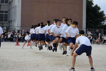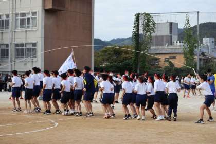 最後の種目は「大縄跳び」です。工夫のしどころがあるこの競技。それを知り尽くした3年生ならではの跳び方で、好記録を残しました。