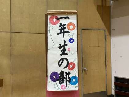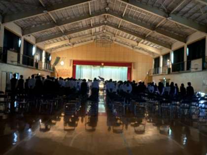 1年生の合唱コンクールです。文化委員長のあいさつの後、校歌を歌って声だしします。
