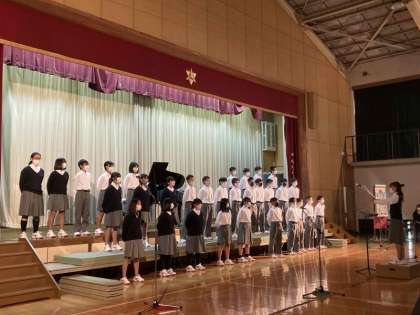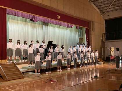 4組は「カリブ 夢の旅」(写真上)、5組は「大切なもの」(写真下)です。どのクラスも精一杯歌いきった様子です。甲乙つけがたい合唱に、審査員は頭を悩ませていることでしょう。