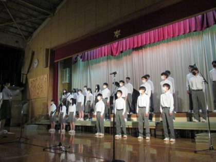 どの学年も、素晴らしい合唱でした。体育館集合は学年ごとでしたが、互いの発表をリモートで鑑賞し、良い刺激(学び合い)となりました。3年生は、3年間の思いが詰まっているのでしょう。特に圧巻でした。