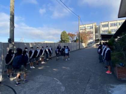 本日より生徒会本部役員立候補者の選挙活動がスタートしました。秋のさわやかな日差しの下、「おはようございます」の元気なあいさつの声が聞こえます。手作りのたすきを掛けて、熱い選挙活動開始です。