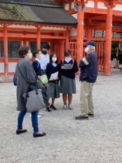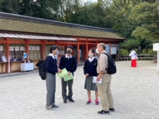 和食をどれくらい食べるか、出身地、好きなお土産などに応えていただきます。皆でインタビューを頑張っています。