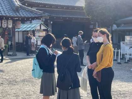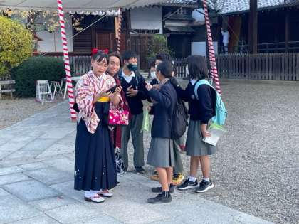 さまざまな方に声をかけ、話を聞かせていただきます。英語を使ったインタビューは、時間がかかるけれど、話が通じた時の達成感は格別です。