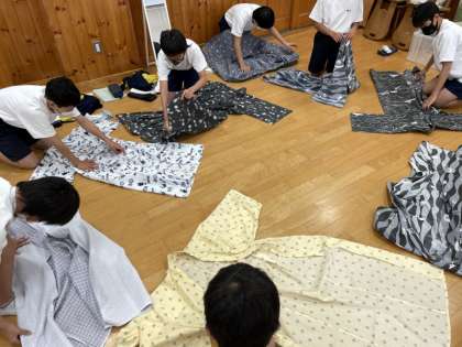 「片付けまでが授業です。」という声のもと、最後に浴衣のたたみ方を教えていただきました。みんな丁寧にたたんでいました。今後、自分で着ることが出来れば、浴衣の楽しみが広がるでしょう。講師の先生方、ありがとうございました。
