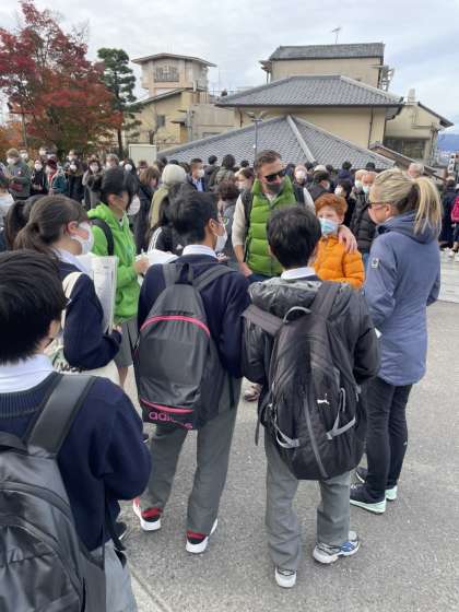 清水寺の様子です。積極的にたくさんの方に話し掛けています。中には、スペインから来ている方もいらして、今朝のワールドカップの話題で盛り上がったりしていました。