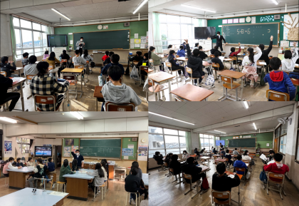 本日午後、校区の小学校の6年生を対象に「小学生授業体験」を実施しました。放送による開会式の後、講座に分かれての授業体験です。中学校の学習内容を、わかりやすく、実験やグループワークを取り入れながら実施しました。みんな一生懸命課題に取り組んでいました。