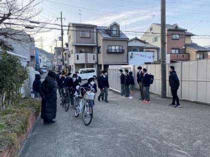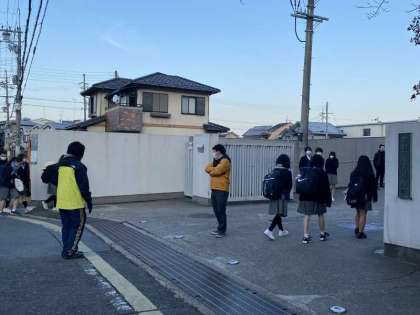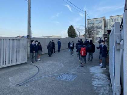 新学期が始まってちょうど1週間がたちました。写真は、今朝の登校風景。校門に立って、あいさつ運動に参加している生活委員の皆さん、寒い中ご苦労様です。気温は低いけれど、みんな元気です。生活リズムも戻ってきたようです。