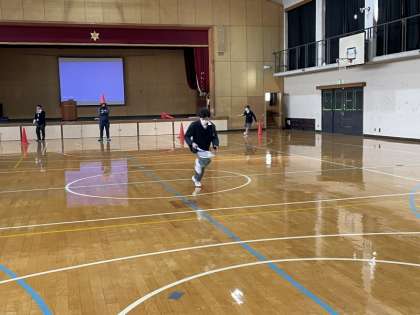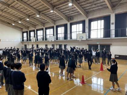 そのあと、学年レクリエーションを行いました。評議会と体育委員会が考えたレクリエーションで、大いに盛り上がりました。いろんな生徒が前に立ち、学年全体での交流ができ、いい機会となりました。
