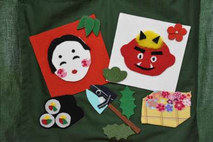 2月の図柄は「節分」です。恵方巻やイワシも添えられていて、たいへんクオリティが高いです。鬼のマスコットもかわいいですね。毎月ありがとう,家庭科部の皆さん。