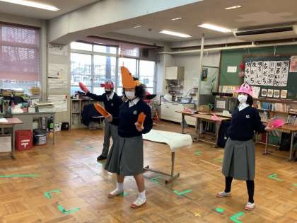 2月10日(金)、育成学級小中交流会を実施しました。昨年同様、リモートによる実施です。司会進行は3年生、中心は各校からの出し物です。はじめの言葉の後、1年生が「エビカニクス」を踊ると、会場の雰囲気は一気に和みました。