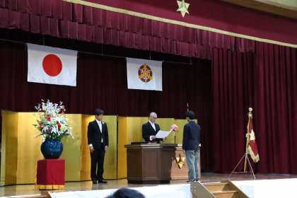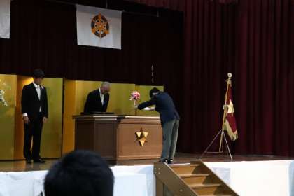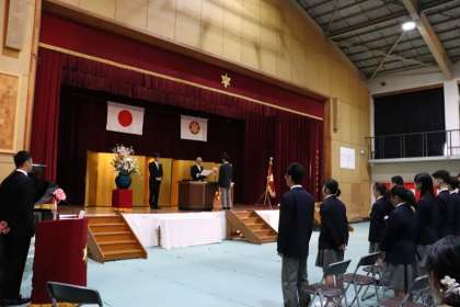 卒業証書授与の様子です。名前が呼ばれると、返事が広い体育館に響き渡りました。
