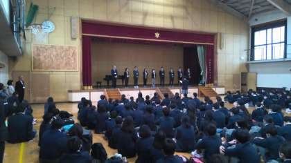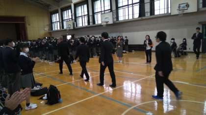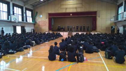 新しく14名の教職員をお迎えする、着任式を行いました。校長先生からの紹介の後、新着任の教職員を代表し、稲井先生よりごあいさつをいただきました。「昨日、職員室前でミーティングをしていた部の生徒から、気持ちよい挨拶をもらった」話と「今、君たちが入学した時と同じような気持ちです」という話のあと、「これから一緒にがんばっていきましょう」とメッセージをいただきました。生徒代表あいさつでは、チェンジウィークなど、音羽中の生徒会の活動を紹介し、これからお世話になる教職員への歓迎の気持ちを伝えました。
