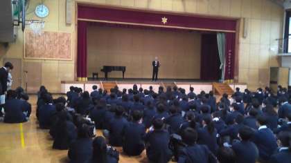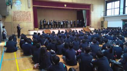 式後、生徒代表のアピールがありました。「開花〜咲き誇れ!個性の花〜」の生徒会目標のように、一人一人の個性を発揮し、新しい音羽中学校を創っていきましょう、と呼びかけました。