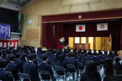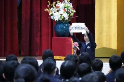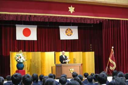 「歓迎のことば」では、音羽中学校の特徴(魅力)を伝え、「凡事徹底」について、触れました。新入生にわかりやすく伝える工夫をしているなど、大きな優しさが感じられました。