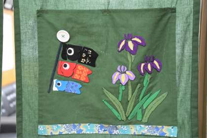 4月の図柄は「五月の節句」ですね。かわいい「こいのぼり」とリアルな「カキツバタ」が配置されています。毎月ありがとう,家庭科部の皆さん。