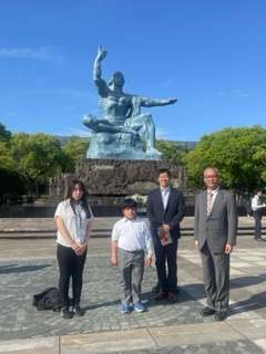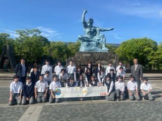 「水を 水を」とうめきながら亡くなっていった痛ましい霊に水を捧げて冥福を祈る「平和の泉」を、間近で見ました。学級ごとに写真撮影も行いました。