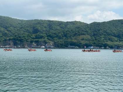 優勝クラスには、オール(漕ぐ時の棒みたいなもの)が、ペーロン施設から贈られました。結果にかかわらず、みんな笑顔でした。