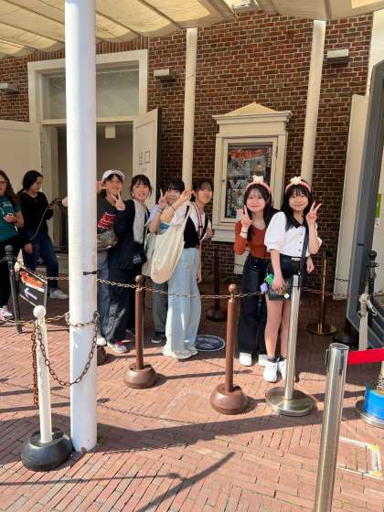 ハウステンボスは、かなり広い!!東京ドームの33個分、東京ディズニーランドの約2倍の広さです。あっ、音中生を発見!カメラを向けて「パチッ!」ご覧の通り、楽しんでます。