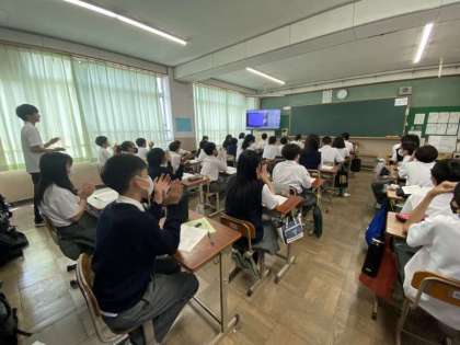 環境衛生、文化の発表風景。教室では、発表ごとに拍手が聞こえます。