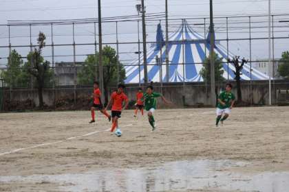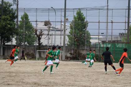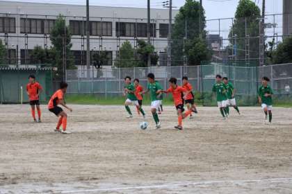 7月9日(日)、洛南中学校で、サッカー部夏季大会が行われました。降り続いた雨で、水たまりが残るグランドでしたが、部員たちは元気いっぱいです。
