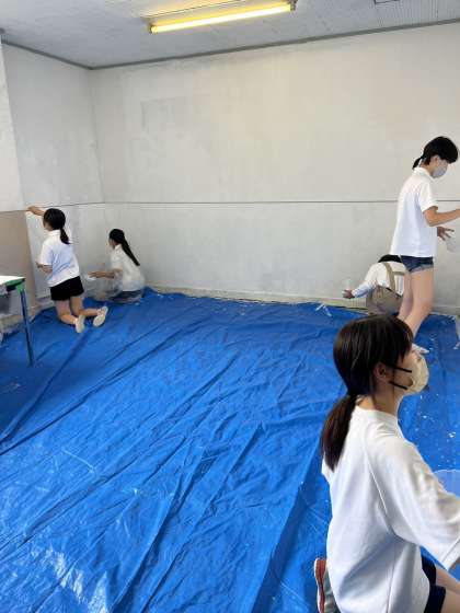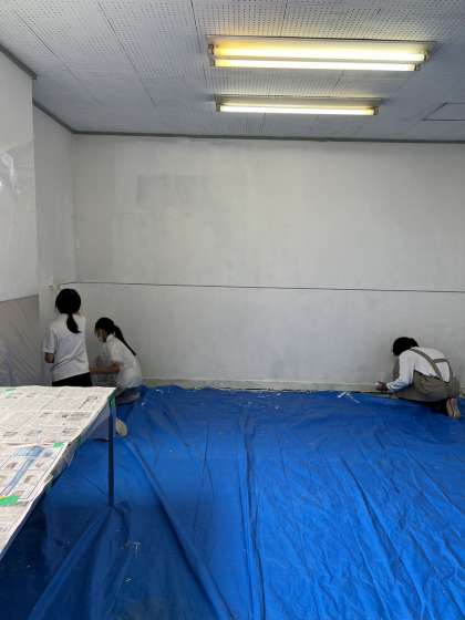 美術部が、夏休みから秋にかけて、壁画アートに取り組んでくれることになりました。場所は、中館1階の相談室です。今週に下地塗りを完成し、10日間ほど乾燥させてから、夏休みに壁画制作に入る予定です。相談室を明るく居心地のよい空間にするため、原画の下書きにも取り組んでいます。