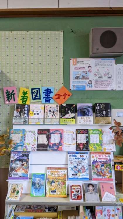 音中の図書館にも、ひと足早い秋が訪れています。ドアから入ってすぐのところには、「つながる」「ひろがる」に関係のある本を並べました。様々な行事やたくさんの出会いを通して、つながりやひろがりを実感することの多い2学期にこそ、ぜひ手に取ってほしい本たちです。