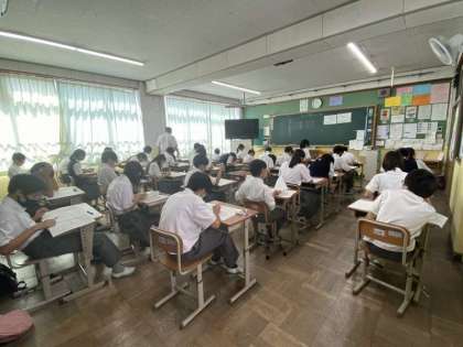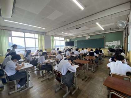 9月19日〜20日の二日間、1年生の第2回定期テストを実施しました。通常の授業時間割で行うため、いつもよりスタートが早いです。また、テスト後は、2、3年と同様授業があり、体力と精神力が必要な二日間。どのクラスも、落ち着いて取り組んでいました。