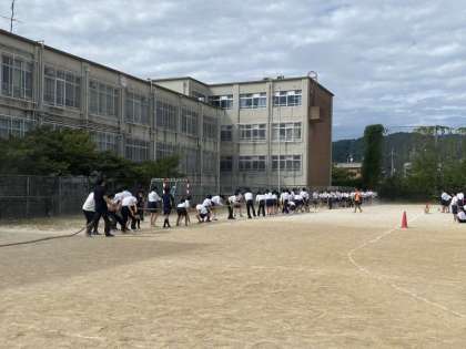 色別リレー・綱引き・ロープジャンプX(大縄とび)・玉入れの4つの競技ごとに集合し、メンバー確認と簡単な作戦タイムの後、実際にチャレンジします。みんなで息を合わせ、リレーのバトンを確実に渡すなど、初めての練習にどの色も燃えました。大きな声援が聞こえるなど、みなぎるパワーを感じました。どの色もしっかり作戦を立て、一致団結し、取り組んでいってください。