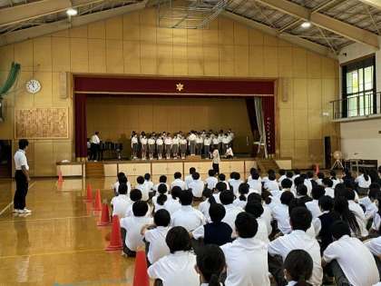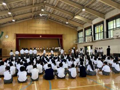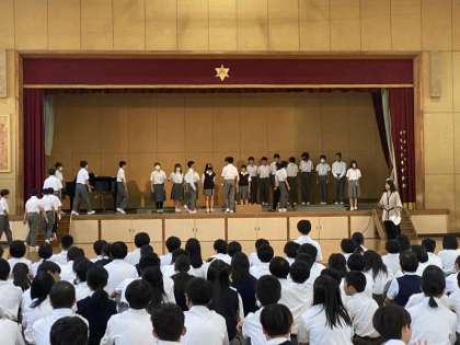 今日、合唱コンクールのリハーサルを行いました。1年生は中学校初めての合唱コンクールです。ステージの動き、マナーを再度確認し、練習しました。みんな姿勢がよく、一生懸命さが伝わってきます。時間いっぱい練習したので、講評は「学年だより」で伝えられました。