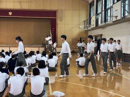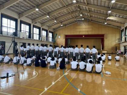 2年生と3年生は、本番同様、生徒司会の進行でリハーサルを行いました。2年生は、どのクラスも概ねスムーズに動くことができます。声もずいぶん出ているようです。「細かな動きを再確認し、声のバランス(ハーモニー)を考えて歌ってください。」と講評がありました。