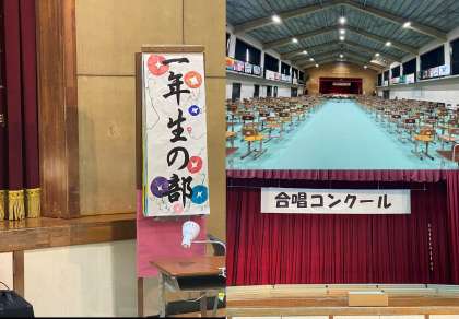 10月4日(水)、合唱コンクール本番の日を迎えました。選曲やパート決めを含めると、1学期から取り組んできた合唱の集大成です。生徒たちは、直前の発声練習・パート練習に取り組み、これから体育館に移動します。全校一斉実施の今回、ぜひ練習の成果を発揮し、互いの合唱を直接聞きあい、合唱のすばらしさを実感してほしいと思います。