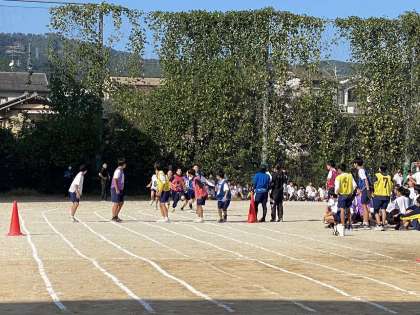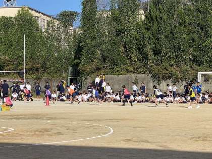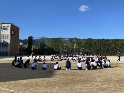 後半は、色別競技の入退場と、学年対抗リレーの練習でした。学年リレーでは、選手たちが本番のごとく全力疾走し、応援席の応援も声高く、大いに盛り上がりました。