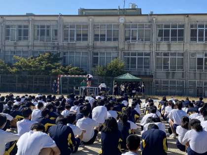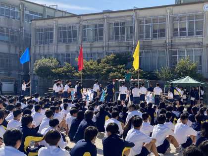 10月13日(金)、体育大会予行練習を実施しました。青空広がるグランドの景色は爽快ですが、暑くなりそうです。水筒持参でグランドに集合しました。