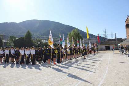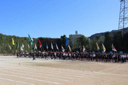 秋晴れの空の下、体育大会を実施しました。「多様な価値観が存在する世の中ですが、『一生懸命な姿』が他人(ひと)を動かし、その人自身をも変える力がある。これは不変です。今日の体育大会、一生懸命やりましょう。」と、校長先生より「開会の言葉」がありました。