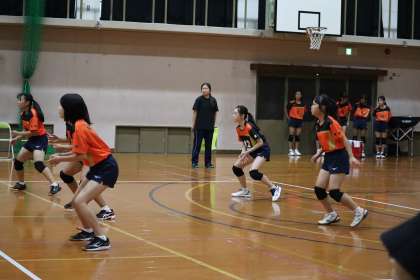 翌11月4日(土)、加茂川中学校で新人大会が行われました。第1試合は岡崎中学校との対戦。1セット目25ー7、2セット目25−14で音羽が勝利しました。