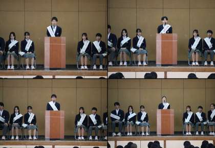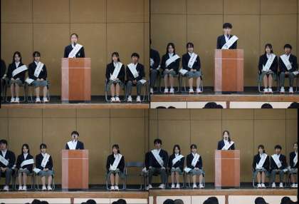 11月8日(水)午後、生徒会本部立候補者の立会演説会を行いました。今回、立候補者は19名で,今日まで選挙活動を行ってきました。演説会の後には、投票が行われます。