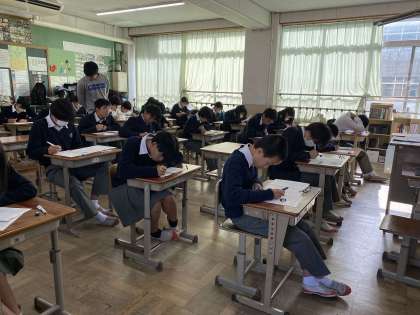 今日から、2年生の第3回定期テストがスタートしました。先週、体調を崩す人が多く、テスト日が変更になった2年生ですが、大部分の人が回復し、テストを受けています。残り2日間も体調を整え、力を発揮してください。(本日の11/20様子)