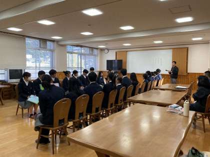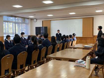 11月20日(月)放課後、生徒会新旧交代式を行いました。本部メンバーは13名です。第57期と第58期の生徒会総勢26名が集合し、交代式を行いました。