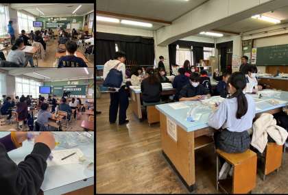 国語科は古文「徒然草」の作品に触れ、数学科は、マッチ棒と消しゴムを使って問題に取り組みました。社会科は「世界の国を知ろう」をテーマに、国旗に着目して学習しました。