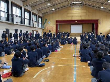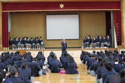 校長先生から、「五百人以上の生徒がいる音羽中学校には、五百通りを超える考え方がある。その意見を聞き、一つの方向性を決定していくのが生徒会です。みんなが参加し、決まったことには、みんなで協力していくことが大切です。」というお話がありました。