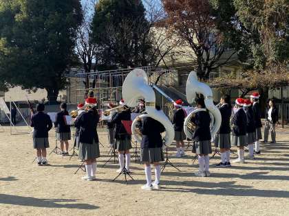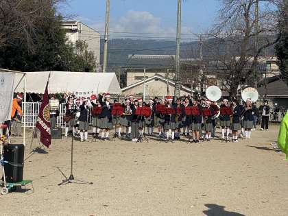 12月10日(日)、音羽川学区の「非行防止愛のパレード」に、本校吹奏楽部が参加しました。コロナ禍で数年来中止が続いていた行事で、4年ぶりの開催だそうです。