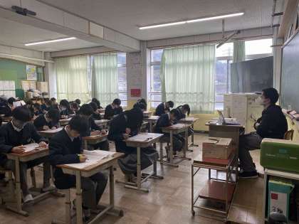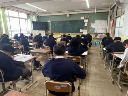 1月22日(月)より2日間、1年生の学習確認プログラムを行います。これまでの学習の定着を確認するテストです。今日は3教科(国・社・数)を実施しました。みんな真剣に取り組んでいました。