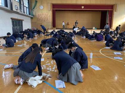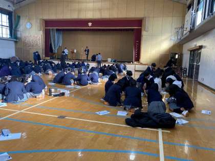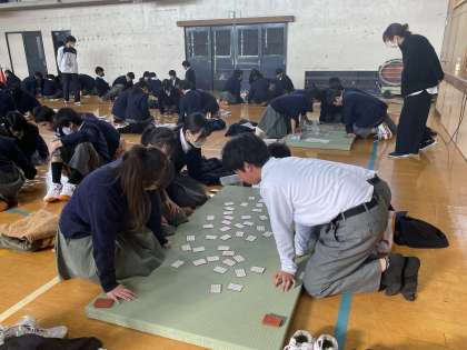 1月22日(月)5、6限、1年生は百人一首かるた大会を実施しました。文化委員会の取組で、準備と、当日の司会進行を担当します。